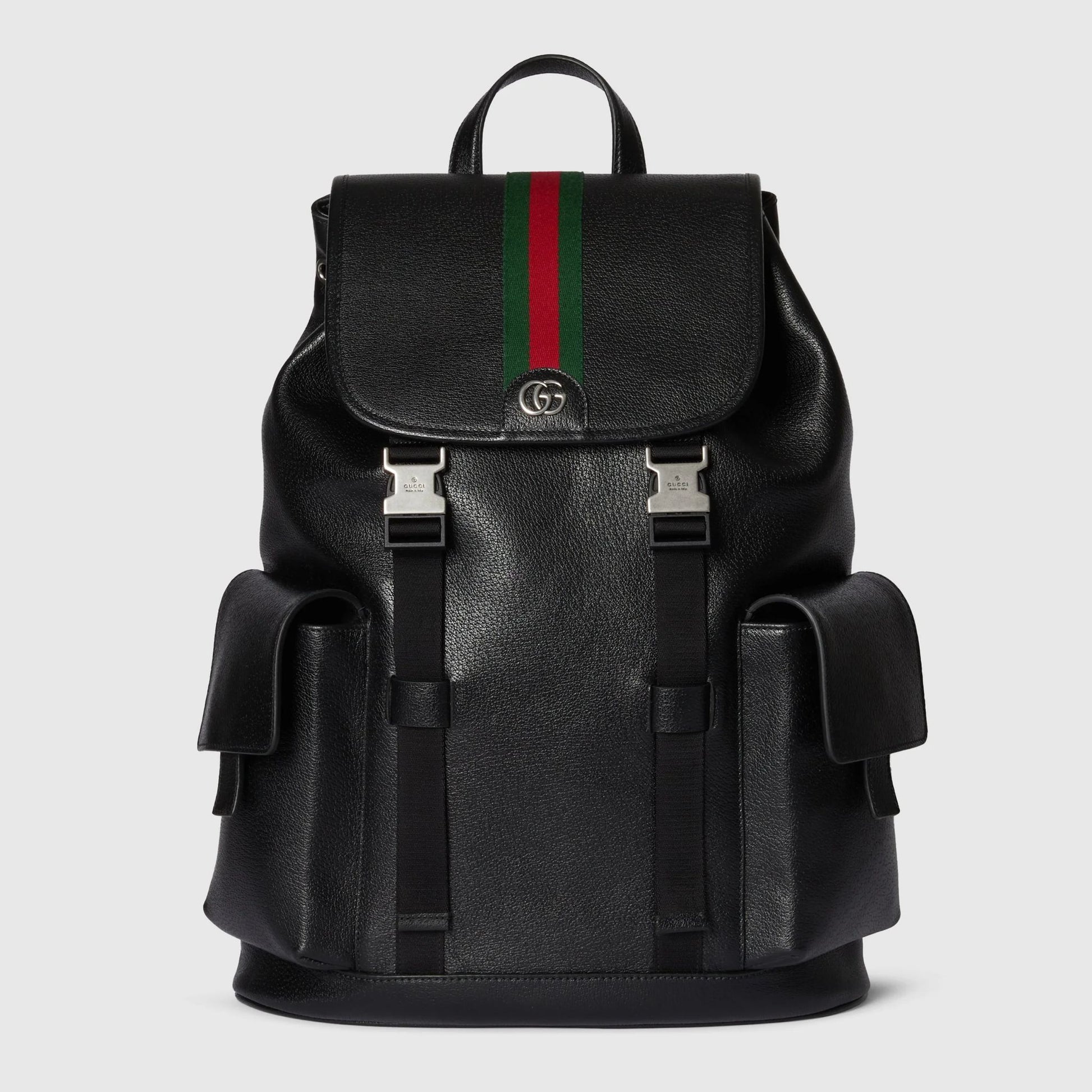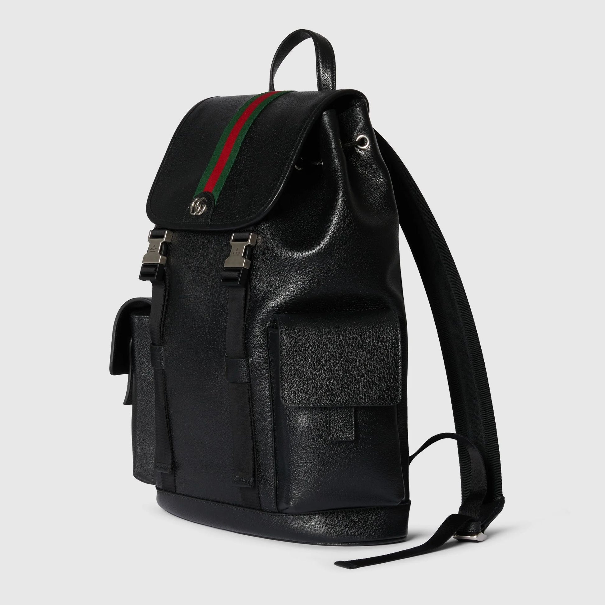 Accented by Gucci’s iconic green and red Web stripe and Double G logo in antique gold-tone hardware, the design embodies timeless sophistication. The spacious interior, multiple zip compartments, and adjustable padded straps ensure comfort and practicality, making it ideal for daily use or travel.