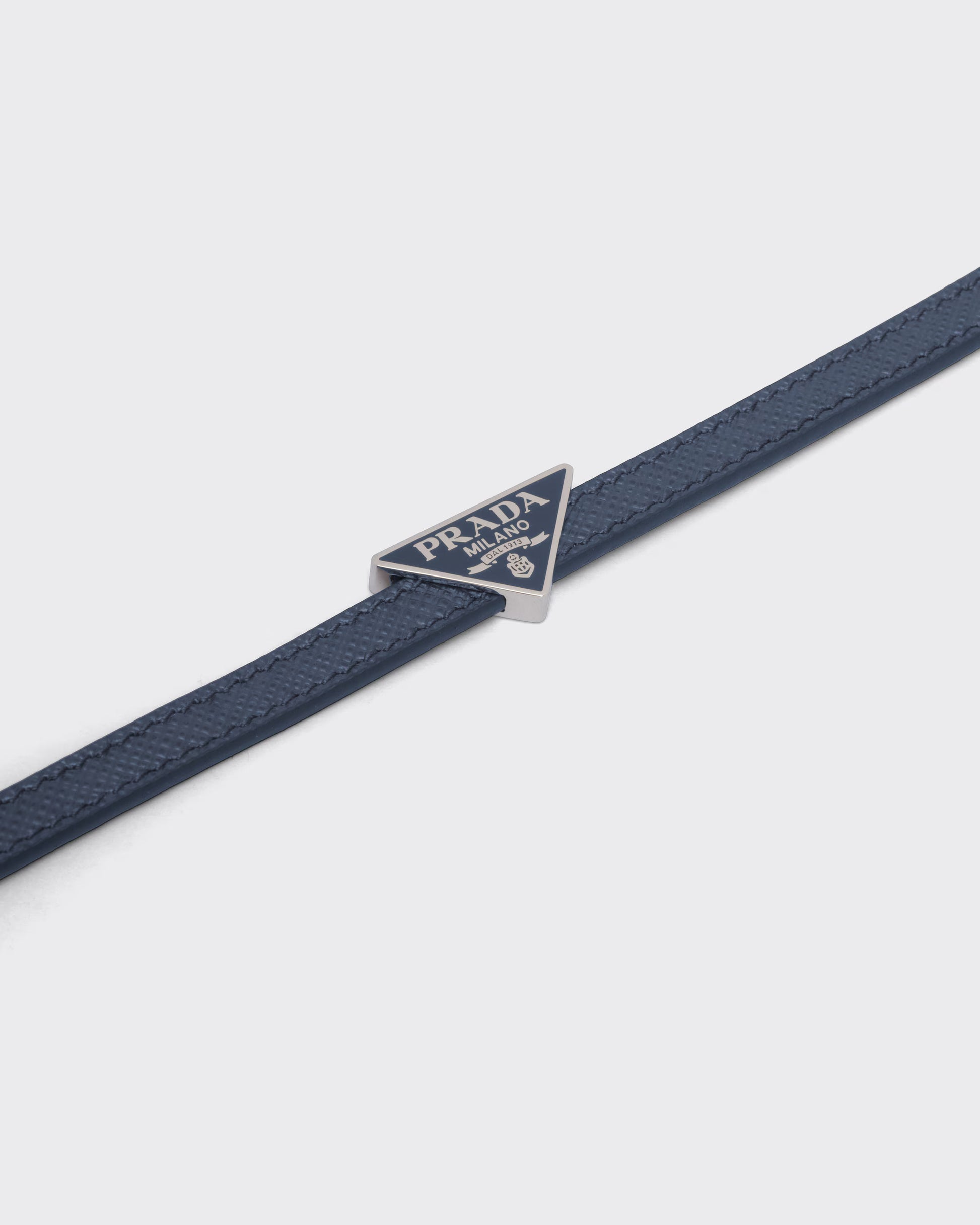 The Prada Saffiano Leather Bracelet in Black captures the brand’s minimalist sophistication and refined craftsmanship. Made from Prada’s signature Saffiano leather—renowned for its distinctive crosshatch texture and durability—this sleek accessory offers a timeless touch of Italian elegance.